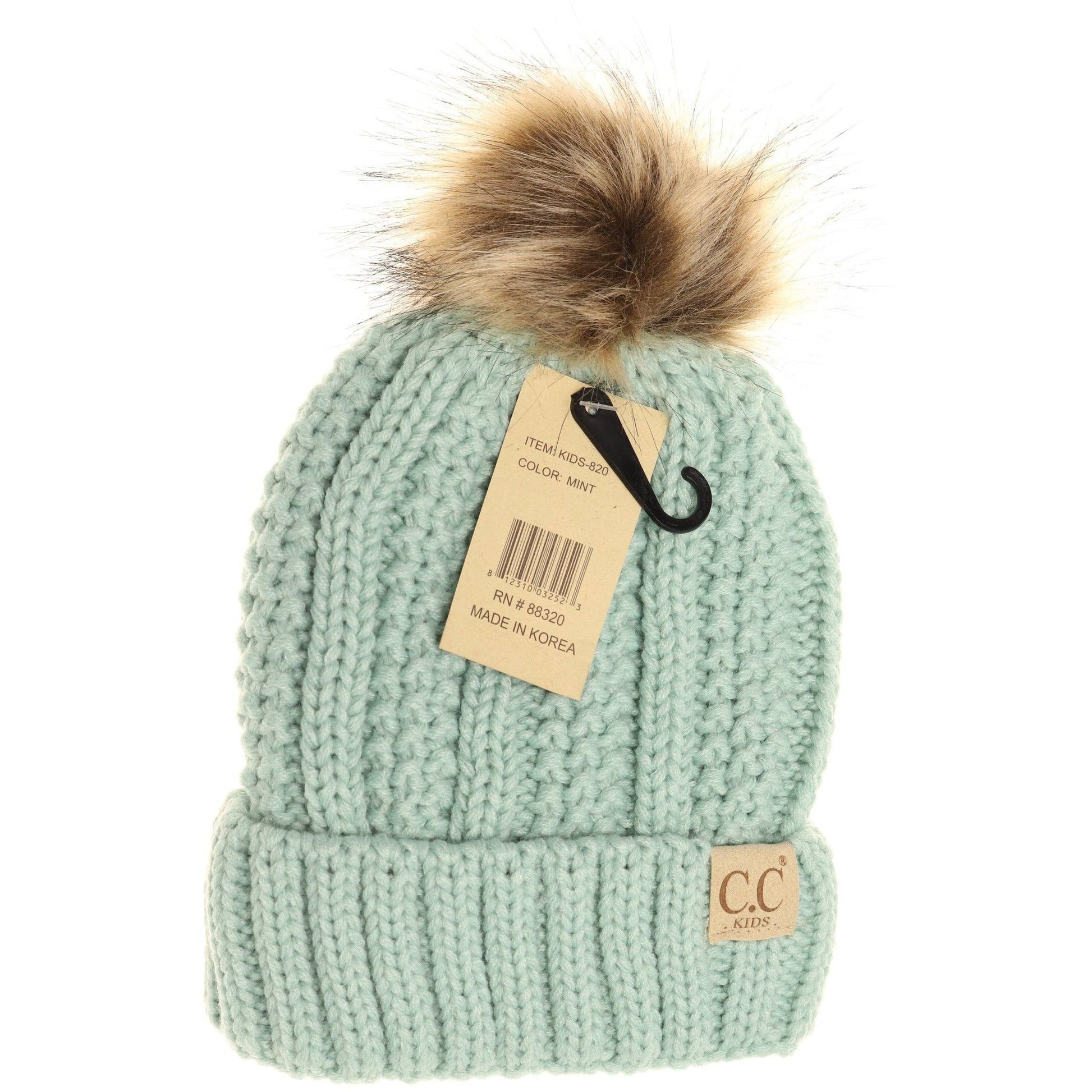 Kids Fuzzy Lined Fur Pom CC Beanie YJ820KIDS
