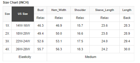 Plus Size Info: 1X (US 14-16) 2X (US 18-20) 3X (US 22-24)